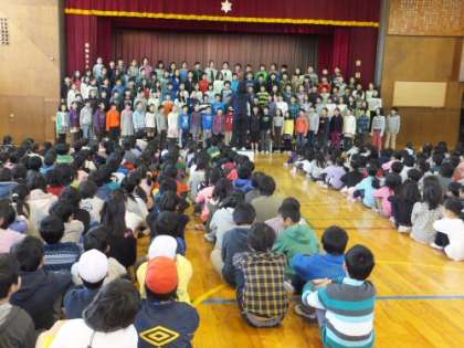 その後、全校児童でこの歌を歌いました。きれいな時間が流れました。