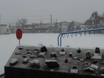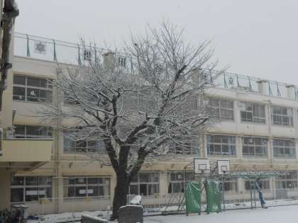 朝からの雪が降り積もり、校庭は白色で一面覆われました。朝から南門・正門を先生方や主事さんで雪かきをしました。また20分休み、子どもたは校庭で遊びたかったのですが、積り方が少なく、すぐ土が見えてしまうので、残念!校庭での休み時間は中止になりました。