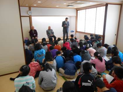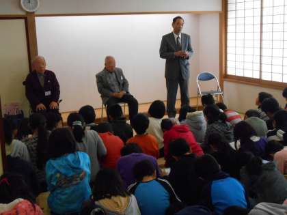 月曜日に引き続き、町会の方に来ていただき、ふれあい給食が行われました。今日は、世田谷東町会のかた3人に来ていただき、弦巻の昔について4時間目お話を聞きました。