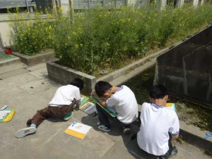 います。自然にふれながら3年生は、観察記録を書いていました。