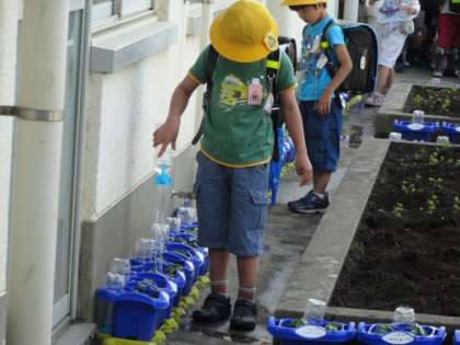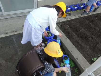 1年生は先日アサガオの種を植えました。毎日楽しみに水をやって
