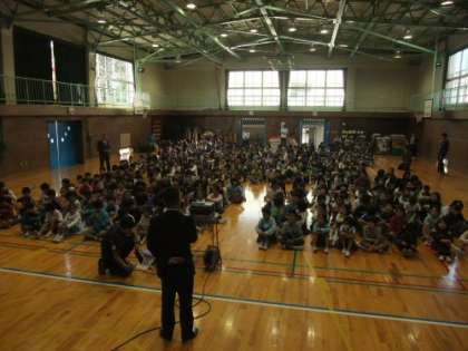 2校時は、低学年を。3校時は保護者との懇談会。4校時は高学年と