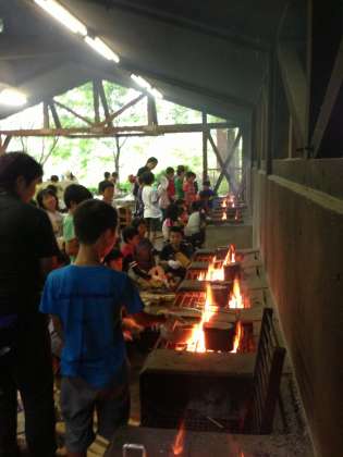 夕食作りが始まりました。学校で練習してきたので、スムーズに運んでいます。年々上手くなっているような気がしています。天気は今のところ、良好。この分では、キャンプファイヤーもできそうです。