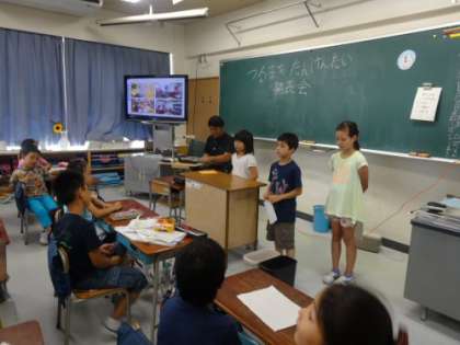 今日の5時間目に見学してきたことの発表会をしました。クイズを