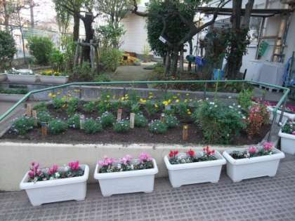 一生懸命、環境を整備しています。正門の横の花壇もきれいに