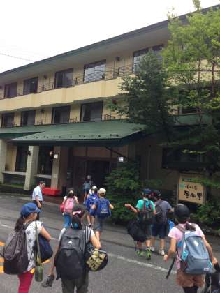 宿舎に着きました。日光は小雨です。大谷川公園で昼食の予定を変更して、宿舎で昼食にしました。