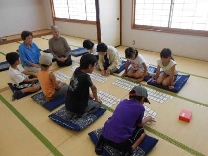 百人一首の講座が開かれました。上の句が読まれるとさっと手が出て取れる子供たちもいて、白熱した対戦になりました。