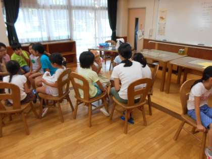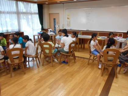 世界の言葉で仲良くなろう!が開講されました。スペイン語、マレーシア語、中国語と各言葉であいさつを教わりました。そのあとは、習った言葉を使って、フルーツバスケットをして楽しみました。