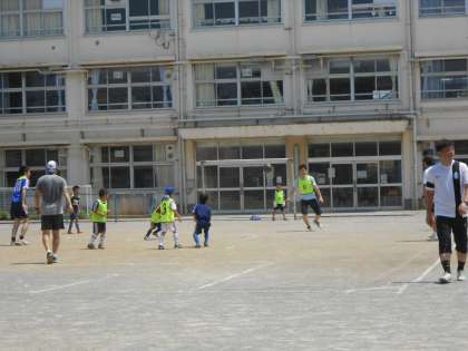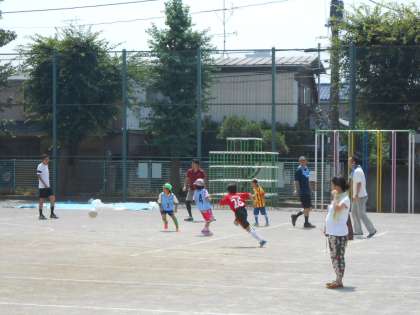 晴天の校庭で一昨日の土曜日、弦巻サッカークラブが、開講してくれた「勝ち抜きサッカー大会」がありました。暑い中、熱戦が繰り広げられました。