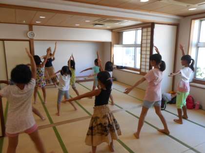 和室では、今年初めて開講してくださった「エンジョイ・フラダンス」が行われました。曲に合わせ、振付を覚えて踊りました。一つ一つのしぐさに男性、女性、波などの意味があるのには、びっくりしました。みんな楽しく踊っていました。