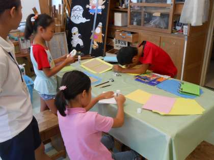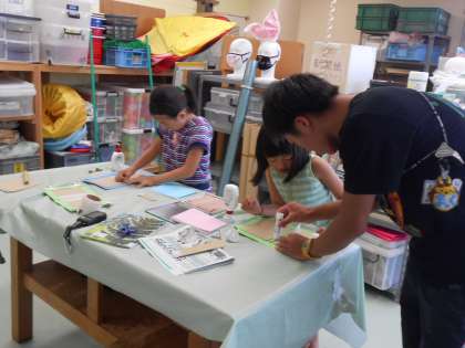 昨日、今日2日間、弦巻児童館で「世界に一冊のマイブックをつくろう」が行われました。自分でストーリーを考え、絵を描き本にし、表紙を付けて完成です。完成したものは、世田谷区の児童館が集まっての発表会で、弦巻児童館代表で成果を発表します。