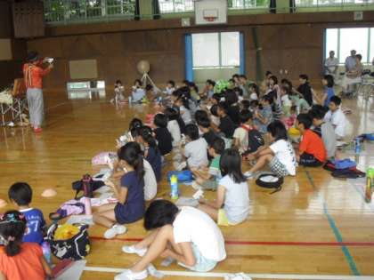 世田谷東町会の方たちが開いてくださる「マジカル☆トムさんの手品教室」が行われました。70名ほどの参加者が、トムさんの話術と手品を楽しみました。おもちゃの紙幣と紙、鉛筆を使ったマジック教室も行われました。バルーンアートのお土産ももらい、みんな大喜びでした。