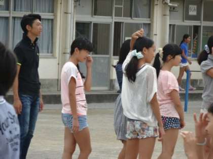 4年生から6年生まで今朝は子どもも先生も一緒になって遊ぶ「麦っ子の時間」