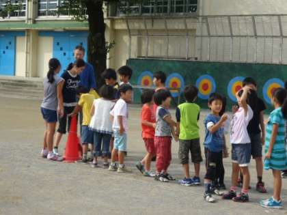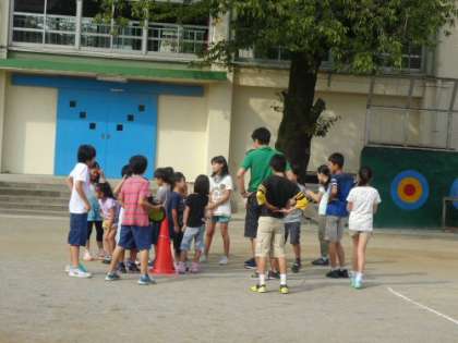 校庭や教室で一緒に遊びます。もちろん班担当の先生方も一緒に遊びます。