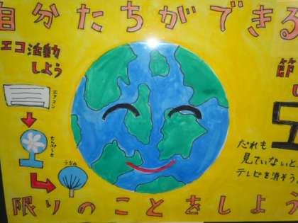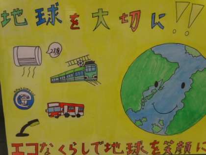 子どもたちが環境を守るポスターを描きました。6年生の3名が優秀賞を