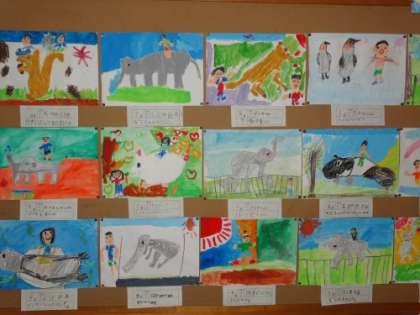 行きます。校外学習本番です。2年生は絵で校外学習のまとめをしました。