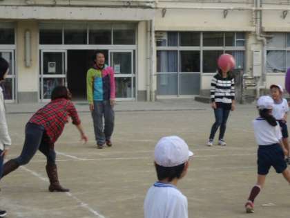 2年生が親子ドッジボール大会をやっていました。触れあいの場として