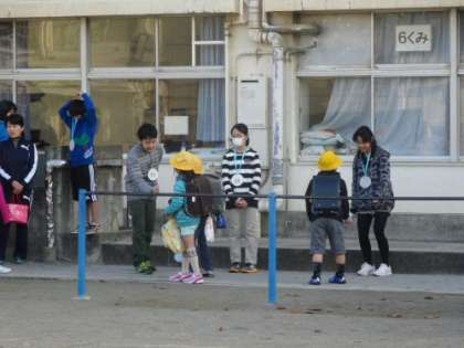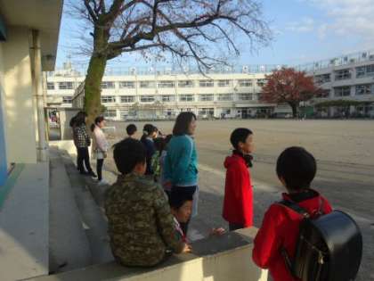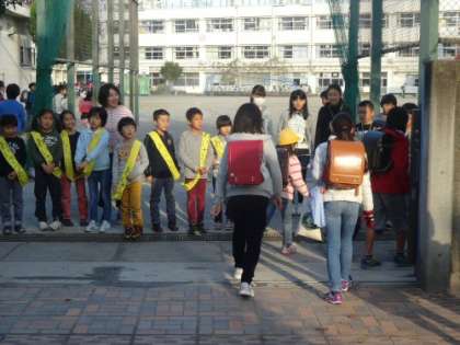 いました。南門には2年生が立ってあいさつをしていました。校庭には