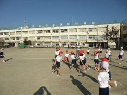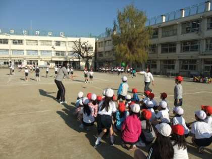 元気いっぱいです。1時間目から校庭で体育をしていました。