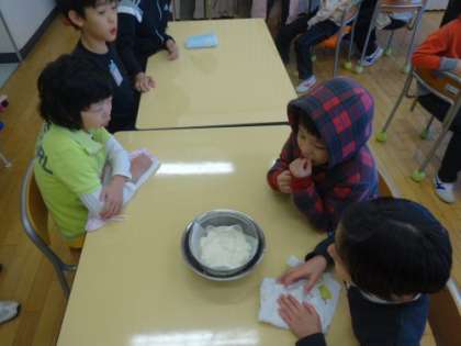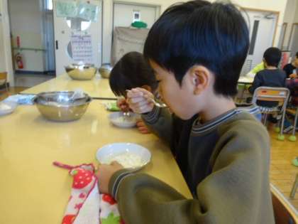 をつくりました。今日は丸いお豆腐でしたが、味はおいしくて歓声があがりました。