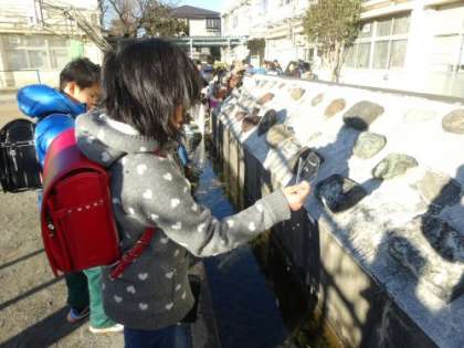 います。弦巻小学校の観察池も氷がはりました。子どもたちはいち早く