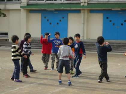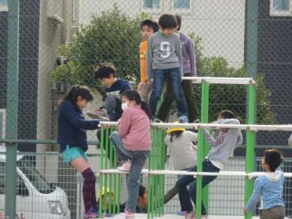 子どもは待ちかねたように校庭に出てきました。それぞれの場所で遊んで