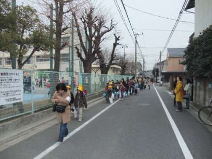 今年度最後の地区班登校です。登下校のおりに、事件・事故にあわない