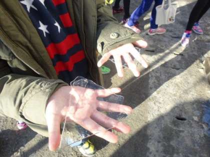 大喜びで氷に触れていました。こういう自然に触れることは良いことです。