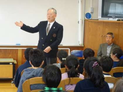 弦巻町内会の池上会長と富田副会長がいらして子どもたちに話をしてくれました。