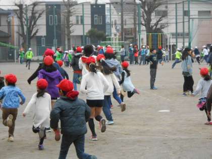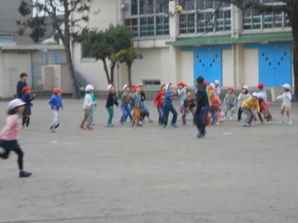 今日の朝、1年生と6年生が交流遊びをしました。ドッジボールでは、6年生が左手で投げ、ゆるいボールを投げていました。また、ドロ警では、6年生同士の会話で「1年生につかまってあげないとね。」とか「あまり速く走るな。」など聞こえてきました。卒業に向けて、仲のよい1年生と交流しました。