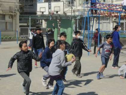 20分休みになるのを待ちかねて、子どもたちが校庭に出てきました。目が輝