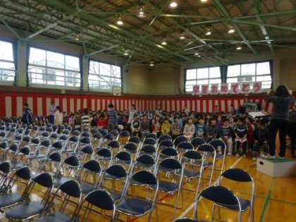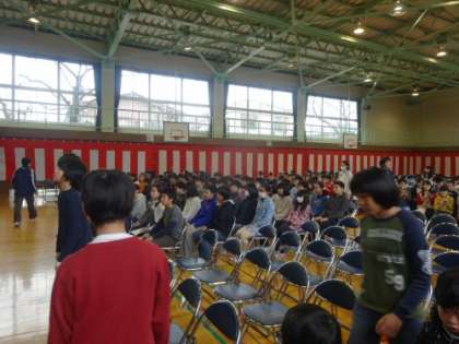 式場に入場することから始め、卒業式を通しで練習しました。心なしか