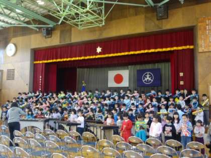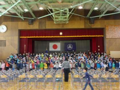 入学式の練習を体育館で行っていました。桜も入学式までもつと良いのですが。