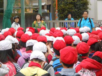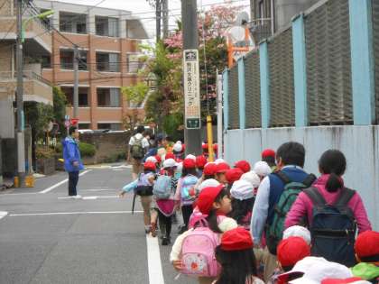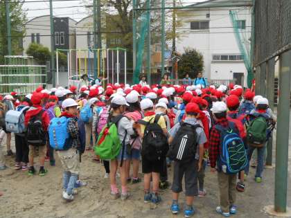 昨日までの雨で、今日の遠足に行けるのか心配していましたが、何とか雨も上がり、元気よく出発しました。長い旅路の始まりです。「いってらっしゃい!」