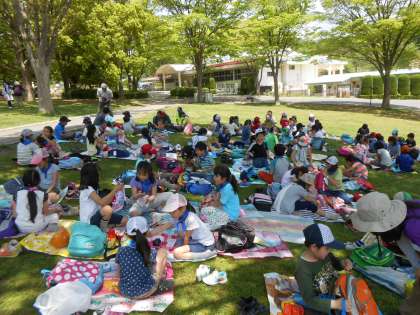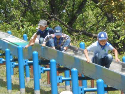 今日3年生は、子どもの国に遠足に行きました。とてもいい天気の中、出発しました。子どもの国は、とてもすいていてたくさん遊ぶことができました。昼食は、木陰を利用して食べました。午後は、モーモー広場で遊び、アイスクリームを食べました。「こんなにおいしいアイスクリーム、食べたことない。」と言いながらおいしそうに食べていました。