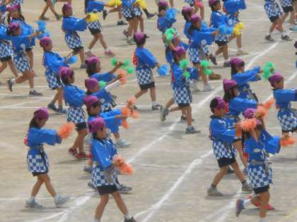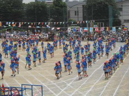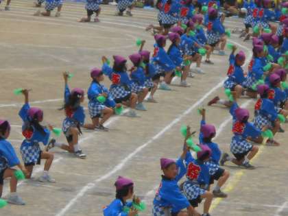 2年生の「ちゃーびらさい」でした。竹で鳴らす音が校庭中に響き、2年生も上手に踊っていました。来賓席から「2年生、上手」という声が上がりました。