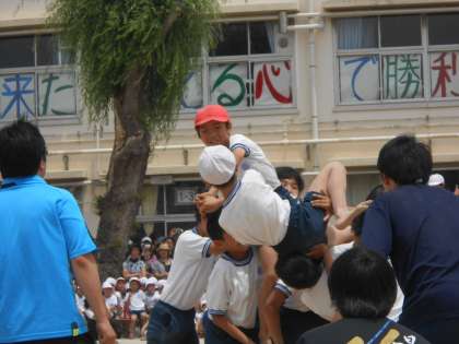 5年生による「騎馬戦」です。集団線があり、一騎討ちありの迫力満点の騎馬戦でした。