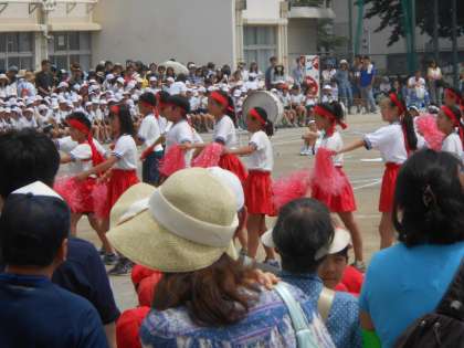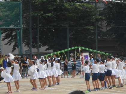 午後1番の演目、応援合戦がありました。チアリーダー中心のダンスが午後のメインです。男子も協力して、楽しいダンスを披露してくれました。