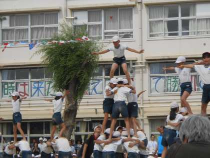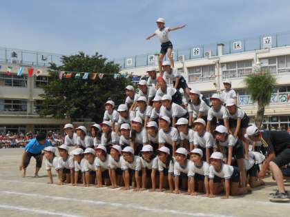 小学校運動会最後の演目、6年生「組み体操2015 〜輝く未来に向かって〜」