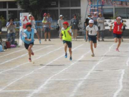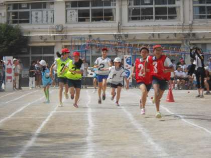 最終演目紅白対抗リレー(高学年) 赤組が最後の意地を見せ男女とも1.2位を独占。でも白組も素晴らしい走りでした。