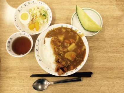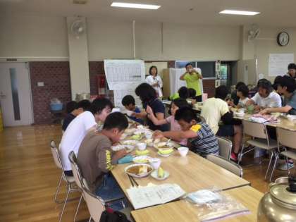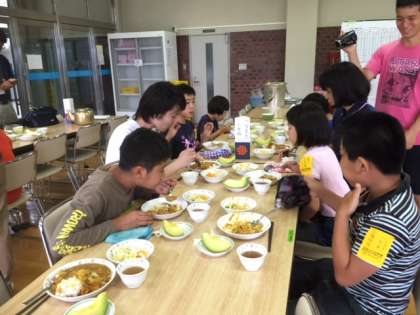 移動教室といえばカレーライスです。サラダもちゃんと食べます。