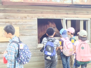 紅葉台ドライブインに着きました。ハイキングのゴールです。馬が迎えてくれました。ここでお土産を買いました。