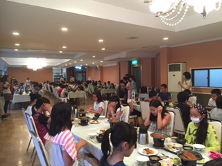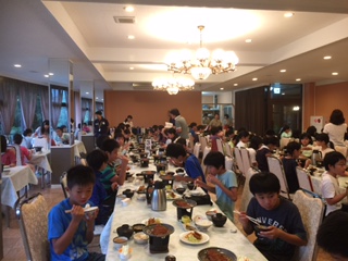 移動教室の夕食はいつもより、ちょっと早い時間です。とても豪華な食事です。