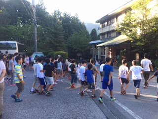 おはようございます。今日も爽やかな朝を迎えました。空は青空が広がっています。子ども達はちょっと眠そうな感じです。