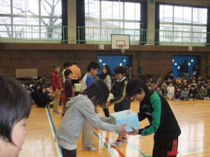 今日は、在校生全員で、6年生を送る会です。心をこめて送る言葉を