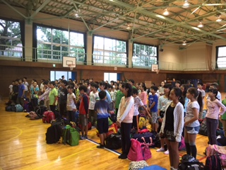 あいにくの雨になってしまいましたが、今日から三日間の宿泊が始まります。たくさん保護者の皆さんが見送りにきていただきました。ありがとうございます。