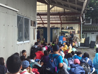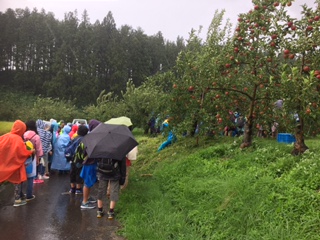 村めぐりの途中でりんご狩りをしました。その宮田果樹園で搾りたてリンゴジュースをいただきました。
