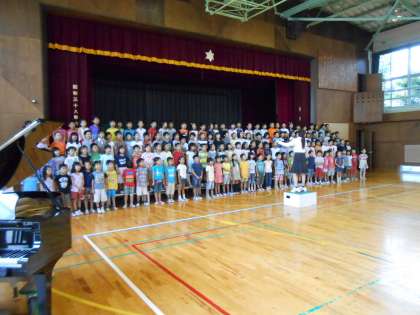 今日体育館で素晴らしい歌声を2年生が、披露してくれました。体育館中に元気な歌声が響きました。曲目は、「世界中の子どもたち」です。とても元気の出る曲です。今日一日、元気な気持ちで、過ごせます。