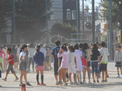 昨日から、6年生が、連合運動会に向けて長繩の練習をしています。朝学校に来て、ランドセルを公邸に置き、練習を開始します。みんなで声をだし、励ましあって練習をしています。現在、5分間で、300回台です。本番までに、何回跳べるようになるでしょう。
