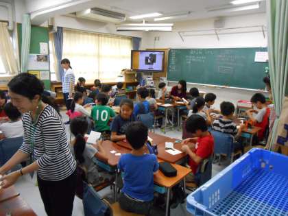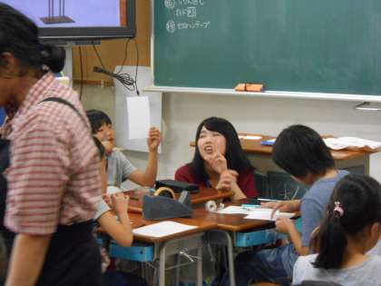 来週の美術鑑賞教室に向けて、美術館の人やボランティアの方が、事前授業に来てくださいました。紙を使ったアートづくりを行いました。